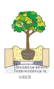 - 수목식재시 염분차단제층이 교란되지 않도록 다짐한다.